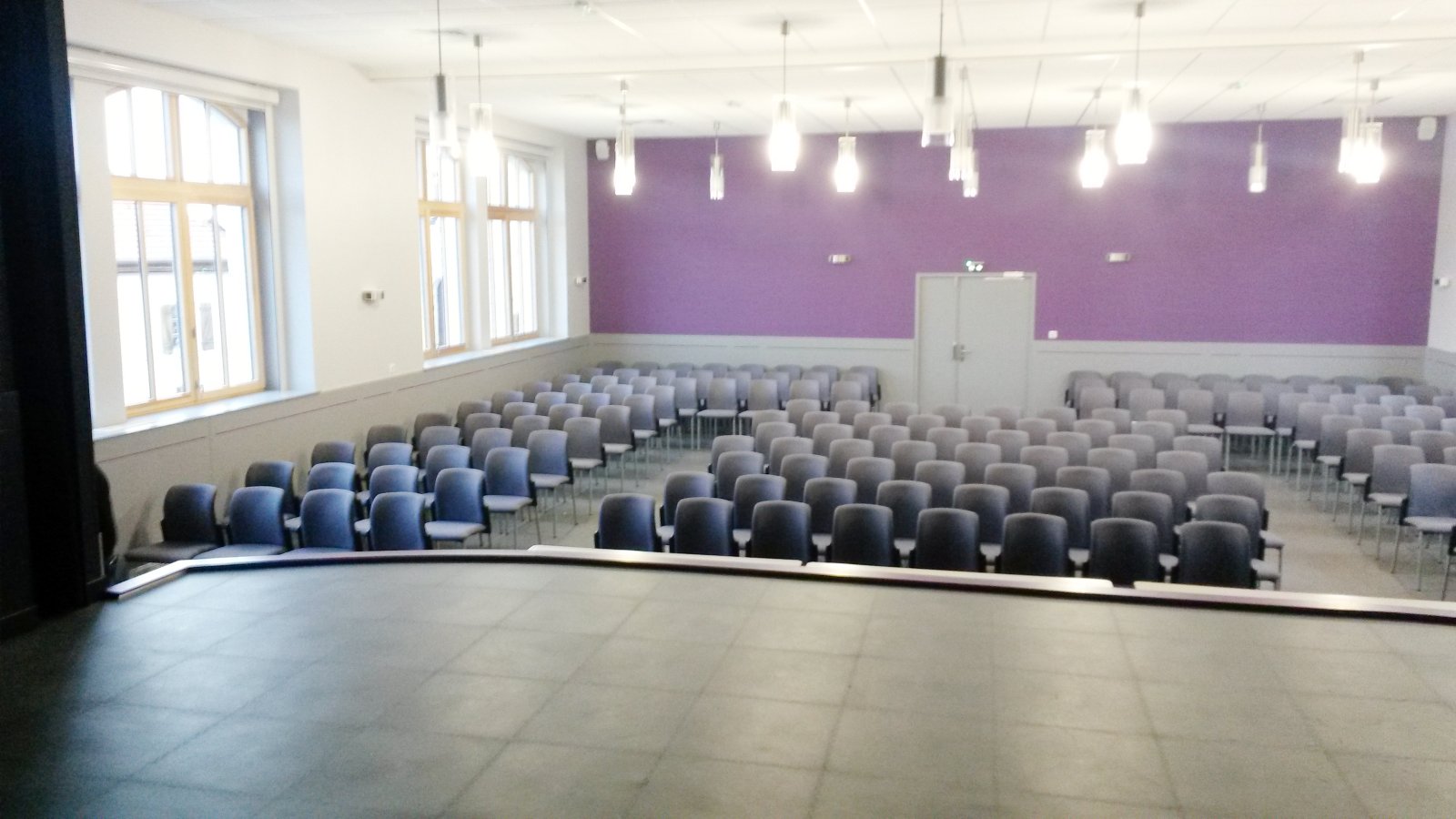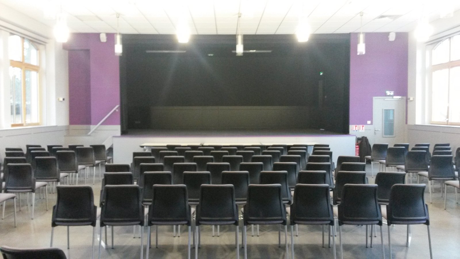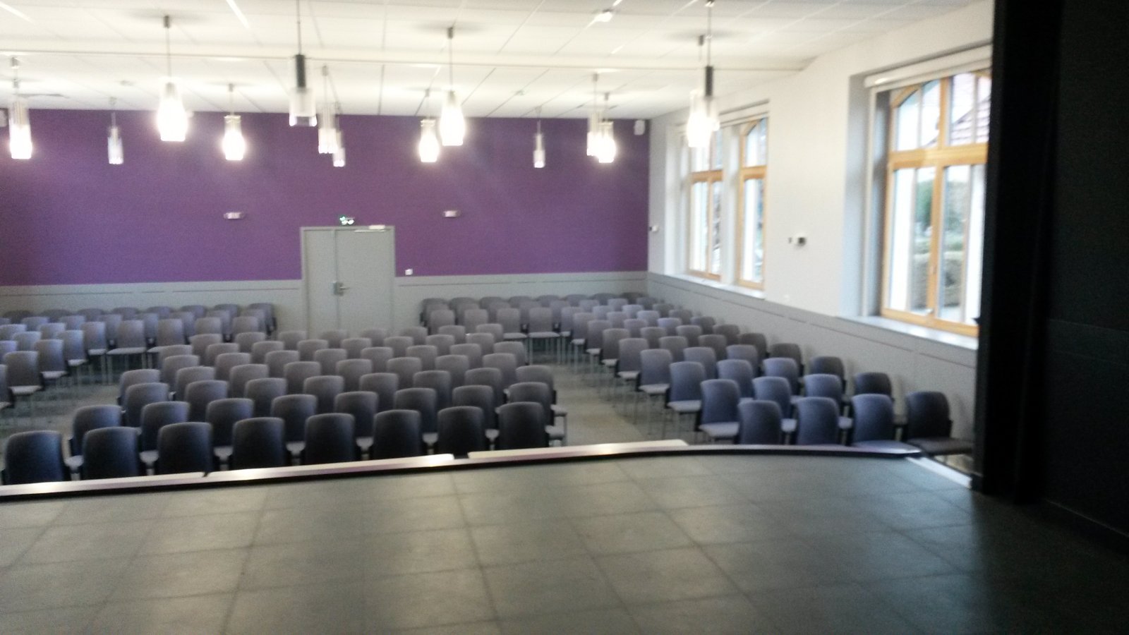 Equipements : Accès PMR, hall d'entrée, 120 chaises, 15 tables de 4 places, équipement de sonorisation (sur demande), qualité acoustique et lumière adaptée.