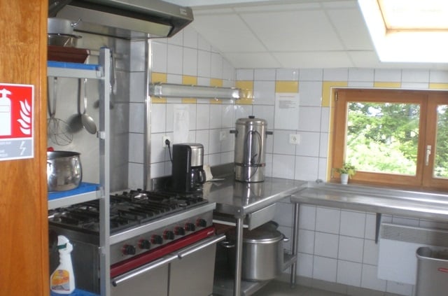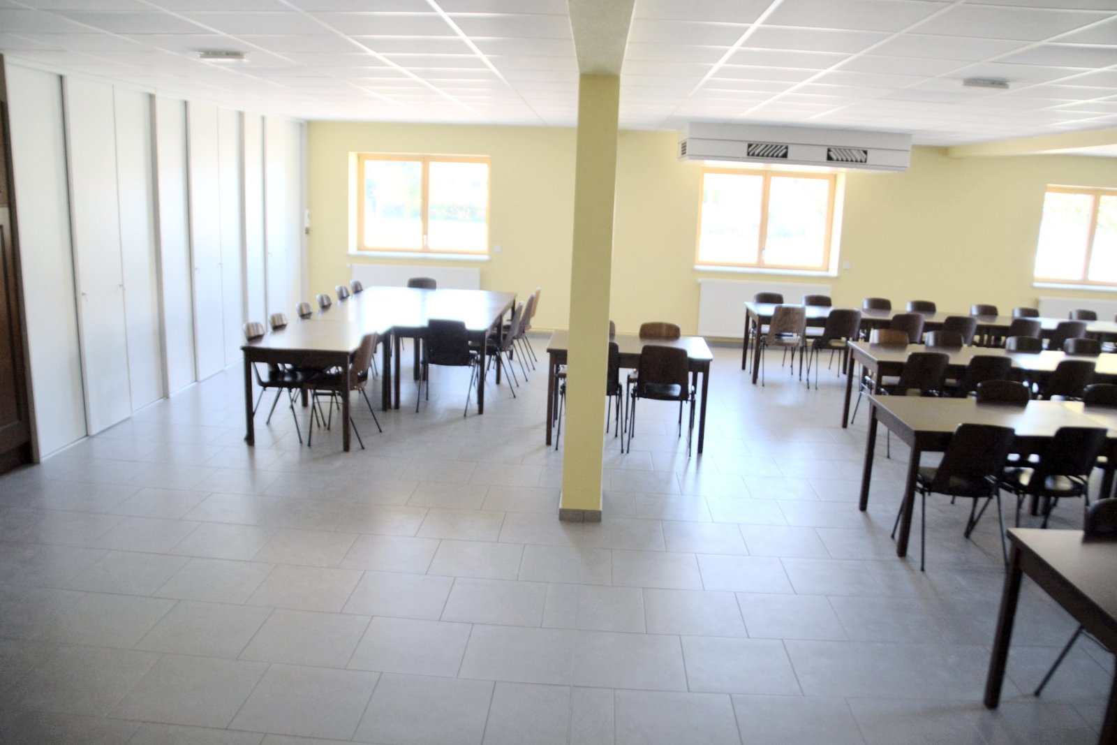 Au 2ème étage, deux salles, tout confort, permettent d’accueillir entre 60 et 70 personnes. La vaisselle est mise à disposition gracieusement. En cas de casse, les éléments seront facturés. La cuisine est équipée de 2 fours, 2 réfrigérateurs, 1 congélateur, 1 micro-ondes, 1 percolateur café, 1 cafetière, 1 bouilloire, etc.