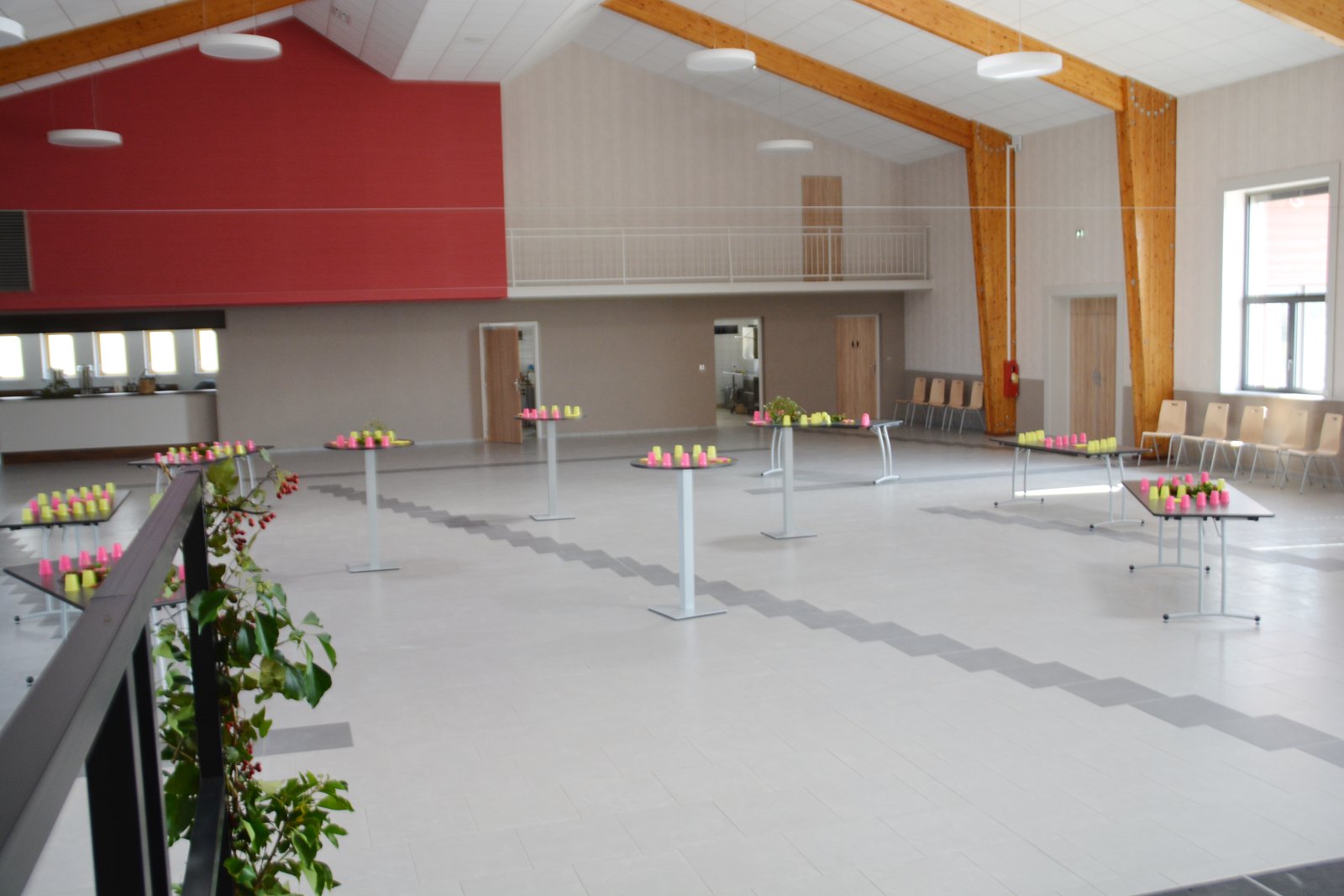Equipements : Accès PMR, hall d'entrée, bar, office (entièrement équipé), vaisselle, podium extensible, sonorisation (matériel et micro HF - sur demande), 390 chaises, 63 tables de 6 places, parking, etc.